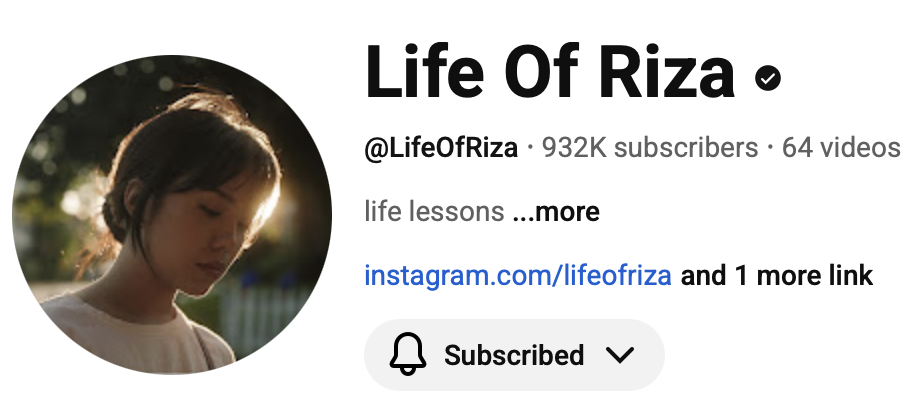 2. Life of Riza – Nếu mọi người yêu điện ảnh hoặc chỉ đơn giản thích thưởng thức những góc quay đầy tính thẩm mỹ cùng lối kể chuyện giản dị, cuốn hút và mang nhiều sự đồng cảm với người trẻ, đặc biệt là người trẻ trong độ tuổi 20s thì đây là nhà sáng tạo sẽ mang lại nhiều sự dịu dàng cho tâm hồn người xem mỗi khi hoà mình vào những video của chị Riza. Mỗi video là một thước phim ghi lại quá trình một người trẻ băng khoăng, lăn lộn tự đặt ra một câu hỏi, một vấn đề trong cuộc sống rồi hành trình những suy nghĩ này dần hé lộ những câu trả lời mà họ độc lập nhận ra. Xem video cảm giác như đang xem quá trình của một người trẻ – có lẽ là đại diện của thế hệ chúng ta – dần chuyển mình để trưởng thành làm một người lớn.